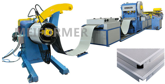 Decoiler—leveling—high speed punch (punch hole)—servo feeding—hydraulic cut-off- transition belt—second leveling—material feeding mechanical hand—Notching unit—Product run-out by mechanical hand—Forming part